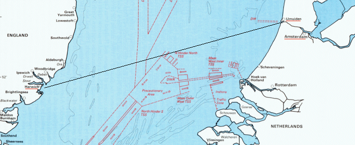The passage plan of "Protection of Innocence" from Amsterdam to Harwich